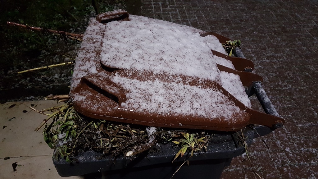 Bioabfall gefriert bei Frost in der Tonne